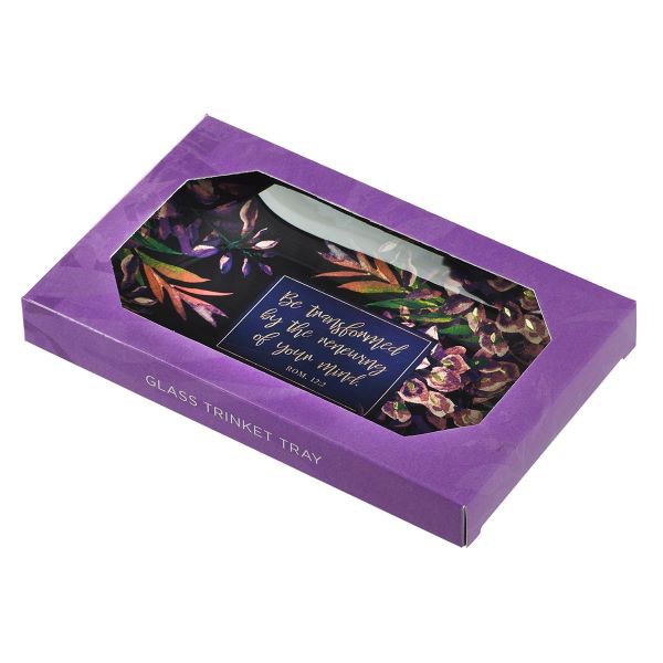 1 available - Clearance Start each day with a hope-filled verse to renew your mind. Each time you use this beautiful trinket tray , you’ll be inspired. Use for rings, jewelry, watch, keys or other items. Or, give as a gift to a friend or loved one. 6 1/8" x 3 3/4" x 0.65" (156 x 95 mm) Packaged in a die-cut gift box Not dishwasher, microwave or freezer safe Tested for Lead