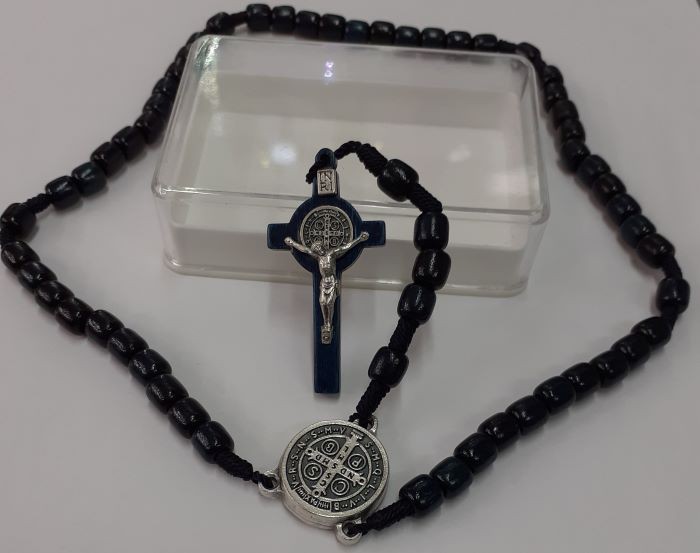 Rosary - St Benedict - Dark Blue Inlay -Wood w Cord