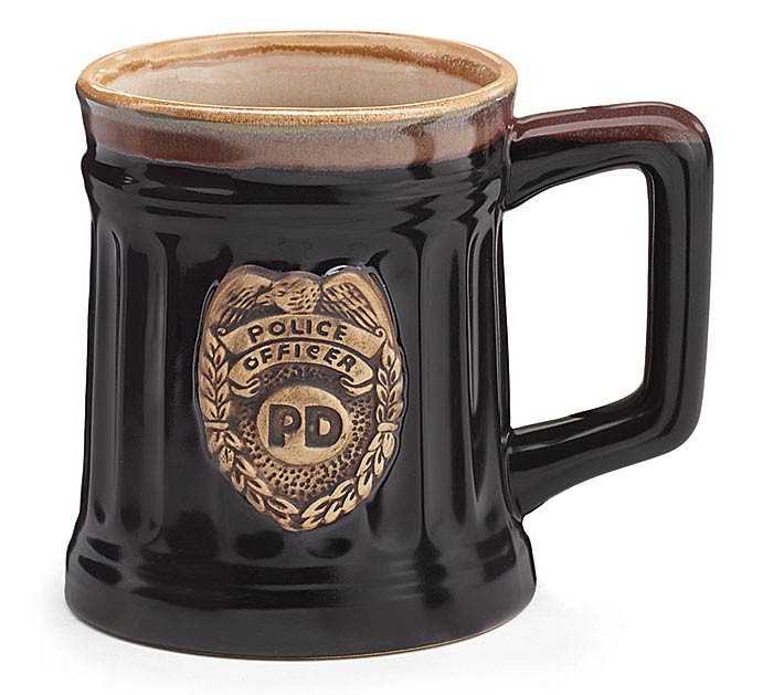 Was $105 Dishwasher safe/FDA approved/Microwave safe. Porcelain black mug with vertical ribbed stein shape and a tan rim. The police department crest on the front. Individually boxed. Burgundy porcelain with vertical ribbed stein shape mug with tan rim Fire Department crest on the front. Individually boxed. 4 1/2"H X 3"Opening