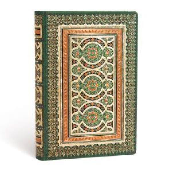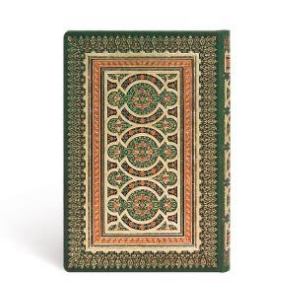 The publication that became the basis of this Paperblanks design was bound by Émile-Philippe Mercier. This binding belongs to a classic tradition of adorning book covers with intricate patterns and patent symmetry as key elements. Unlike many bookbinders of the time, who were taking their cues from experimental artists and their novel forms of expression, Mercier stayed loyal to old principles. The central panel and outer frame of the design feature small details and delicate precision which are contrasted with the heavy, solid gilt tooling. In fact, for many years Mercier supplied all the gilt work for another esteemed bookbinder, Cuzon, gaining a mass of specialized experience. No wonder then that, once he started his own bookbinding business, it was his expert gilt tooling that earned him especially high praise.