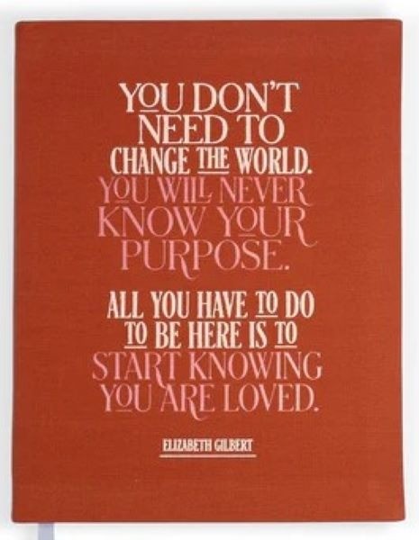 A journal that proclaims we don't have to do ANYTHING but bask in our own lovability? That's our kind of journal. This beautiful cloth-covered notebook is by Elizabeth Gilbert, bestselling author of Big Magic and Eat Pray Love. Journal measures 5.75” X 7.5” Cloth-covered softcover with foil stamping, 160 lined pages Ribbon marker