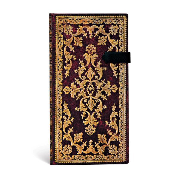 Our Duomo design was inspired by Urbino’s cathedral, “Duomo” meaning “cathedral church” in Italian. After suffering serious damage in the wake of a powerful earthquake in 1789, the structure was rebuilt in a Neoclassical fashion, identifiable by its clean lines and overall restraint of design. One can observe a similar quality in the ornamental scroll of this book cover, where balance is achieved between the patterned stamping and understated opulence of the embossed gilt.