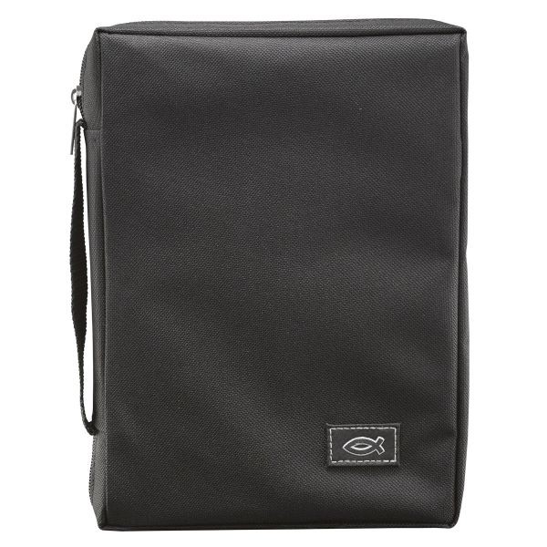 Was $120. Now $80 Last one The heavy-duty poly-canvas Bible Cover features a rubberised fish applique, a webbing carry handle, an exterior zip pocket and a pen loop inside of the case. Great features at an affordable price. Fits the Catholic Sunday Missal.