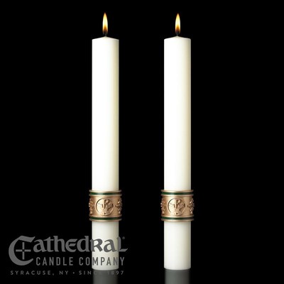 Candles | Complementing Altar Candles | 51% Beeswax | Cross of St. Francis | Box of 2 | Available by Order