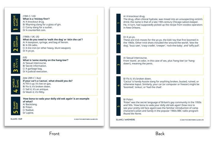 League of the Lexicon: Slang Edition | 500 Questions on the Vulgar Tongue | Two Brothers Games & Jonathon Green| Created by Joshua Blackburn
