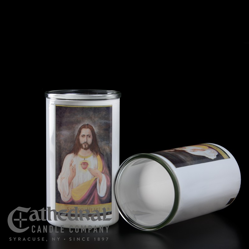 Reusable Glass Cup/Vase - Holds 3-day Candle Refill. Sacred Image - Sacred Heart Option - Add Refill and purchase the Set