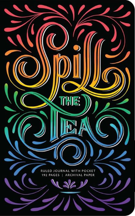 SALE - Was $140 Unleash your inner Queen with this deluxe “spill the tea” journal. With 192 ruled pages of archival paper, this deluxe journal is the perfect place to record all of the tea, gossip, and everything in between. Featuring a bold design fit for a Queen, this hardcover journal lies flat when open and includes a ribbon placeholder, an elastic band, and a back pocket for storing keepsakes and mementos. Format: Hardbound Trim Size: 5.25 x 8.25