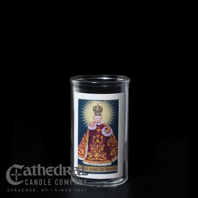 Candles - Devotional - Sacred Image Re-usable Cup/Vase -Infant Jesus of Prague - Glass - Small